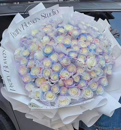 包装: 内衬英文字母包扎,外衬白色包装纸