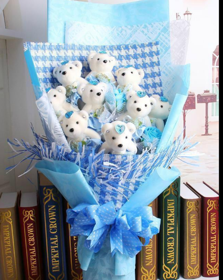 材质: 精选9只小熊公仔,(颜色随机)组成美丽花束