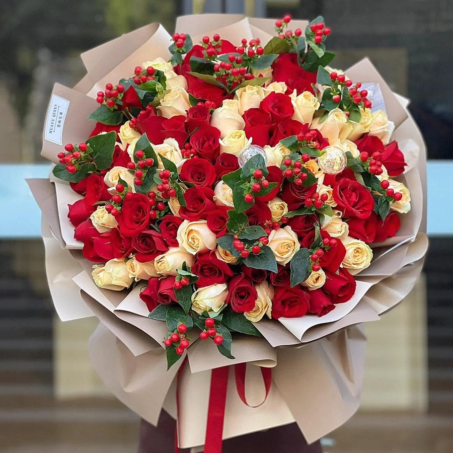 材质: 精选39枝香槟玫瑰,60枝红玫瑰,红豆搭配如图制作
