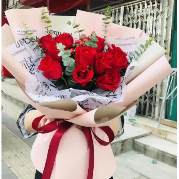 材质: 精选11枝红玫瑰,红豆 尤加利叶搭配
