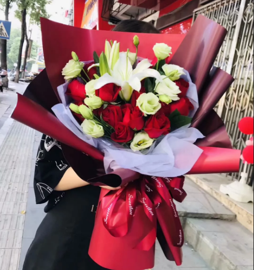 材质: 精选11枝红玫瑰 4朵百合,桔梗搭配