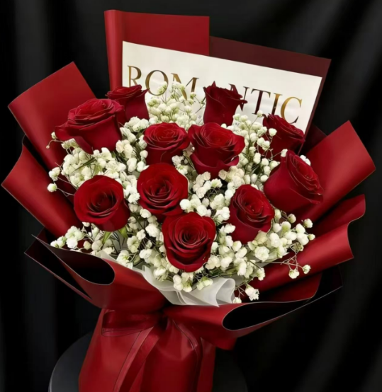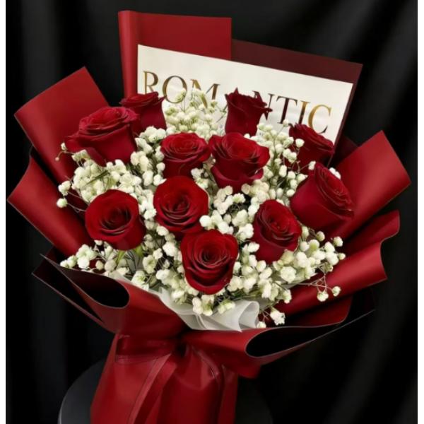 材质 11朵红玫瑰,满天星丰满