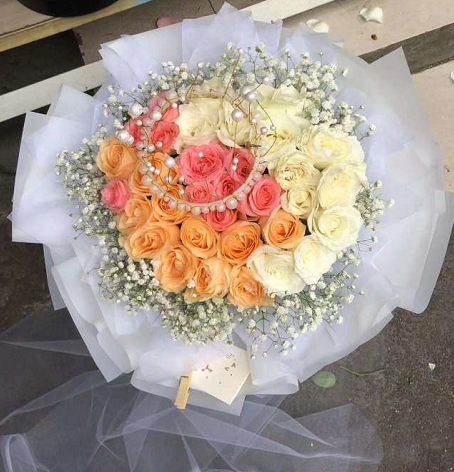 材质: 33枝香槟,白玫瑰,戴安娜混搭,1个皇冠,满天星搭配
