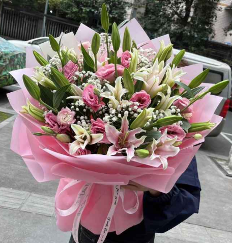 材质: 33朵 白和粉百合,粉色洋桔梗搭配