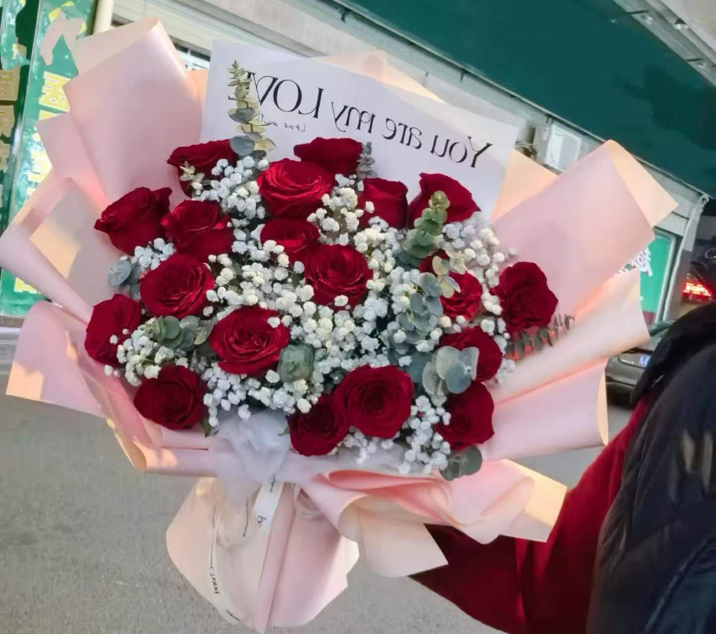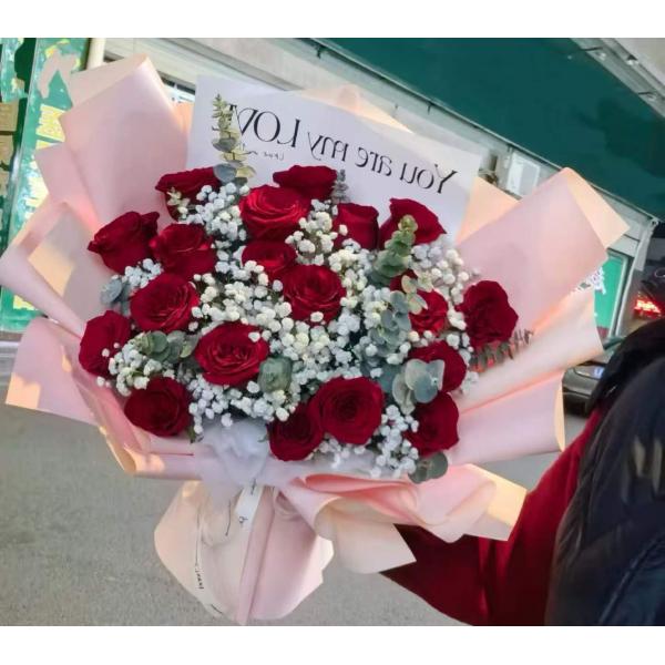 材质: 精选19枝红玫瑰,满天星丰满 尤加利叶搭配