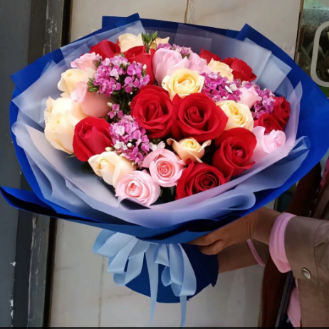 | 材质: | 精选10朵红玫瑰,10朵香槟玫瑰,9朵粉玫瑰 共29枝混搭,相思梅间插 |