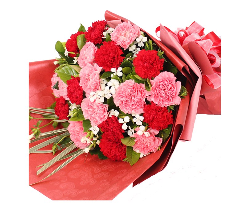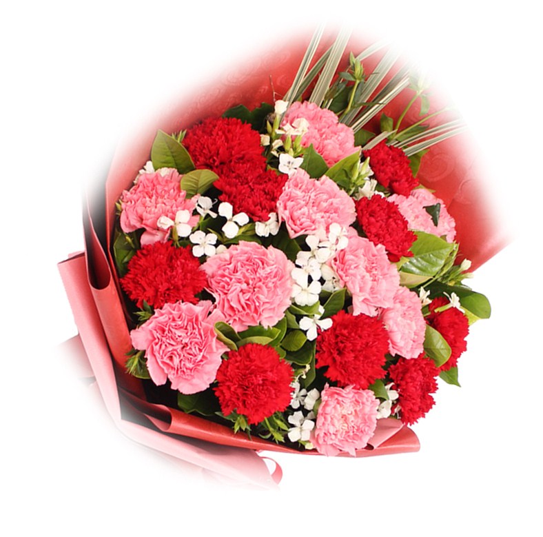 材质 精心挑选了19朵红色和粉色康乃馨,点缀黄色满天星,美丽迷人