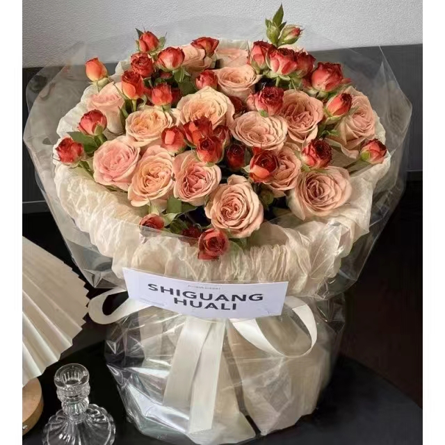 材质 精选19枝卡布奇诺玫瑰,5枝多头橙色泡泡