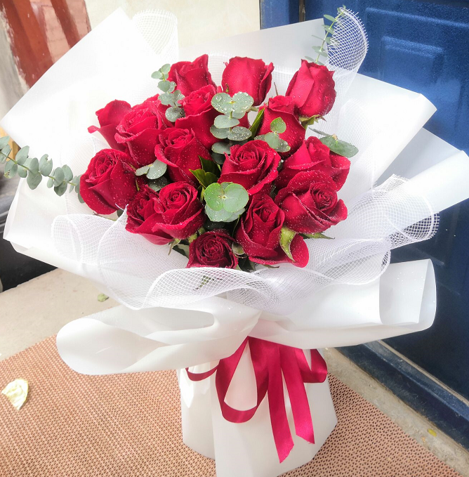 材质: 精选19枝红玫瑰,尤加利叶点缀