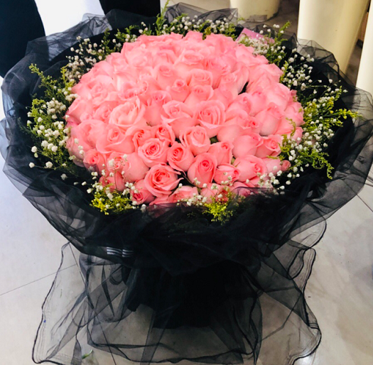 材质: 精选99枝戴安娜玫瑰,满天星,黄英围边