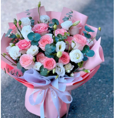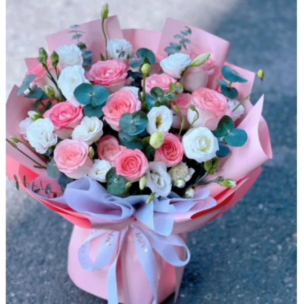 材质: 精选11枝戴安娜玫瑰,桔梗,尤加利叶搭配