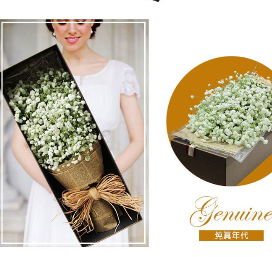 | 包装: | 英文报纸圆形包装,搭配白色蝴蝶结,完美无瑕。 | ||||