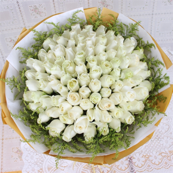 | 材质: | 精心挑选66朵白玫瑰,黄莺美丽点缀 | ||||