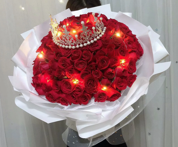材质: 99支红玫瑰,皇冠,彩灯搭配