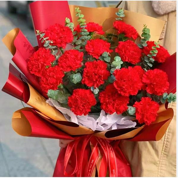材质: 19枝红色康乃馨,尤加利叶搭配