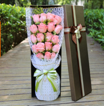 材质: 19枝粉玫瑰,绿叶搭配