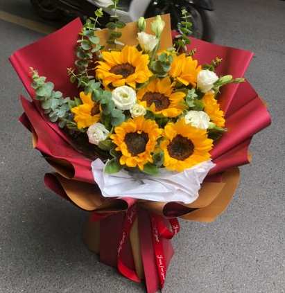 材质: 7枝向日葵,洋桔梗,尤加利叶搭配