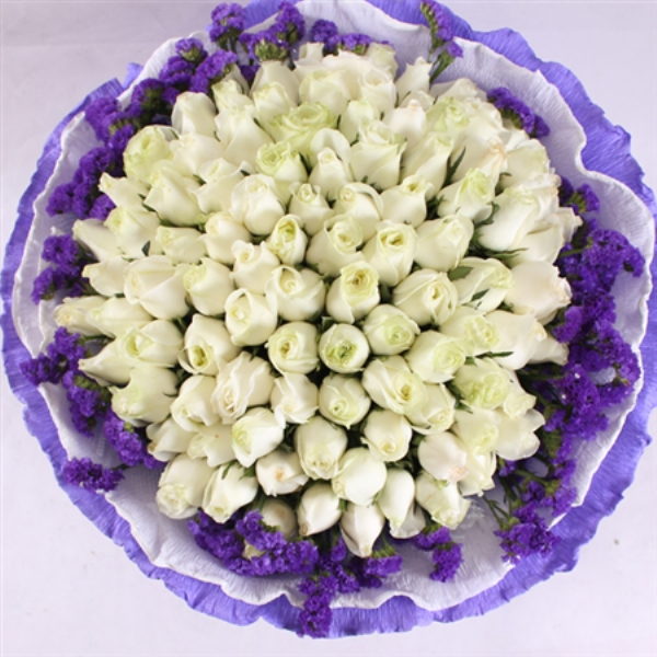 材质: 精心挑选66朵白玫瑰,黄莺美丽点缀