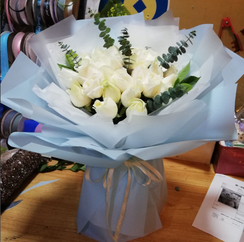 包装 内层白色 外层浅蓝色包装纸韩式包扎