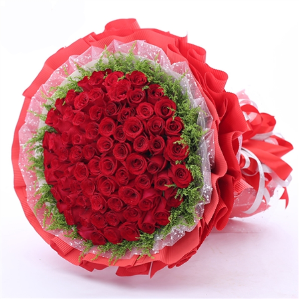 | 材质: | 66枝昆明顶级红玫瑰,黄莺间插 |