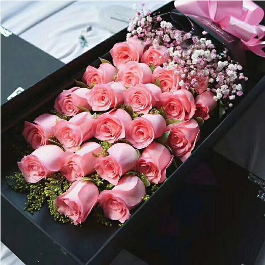 | 材质: | 精选21枝戴安娜玫瑰,黄英,满天星搭配 |