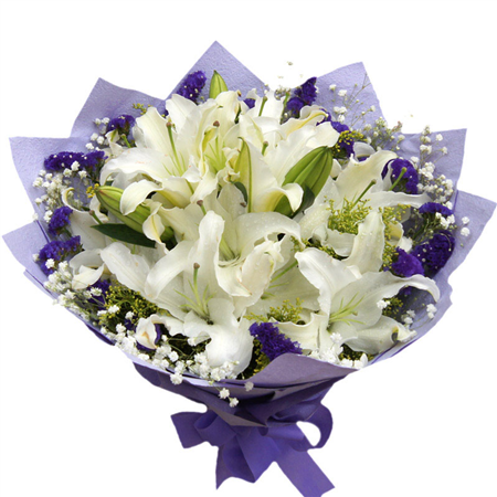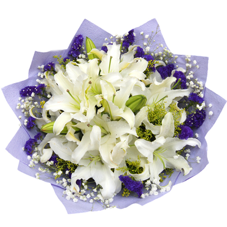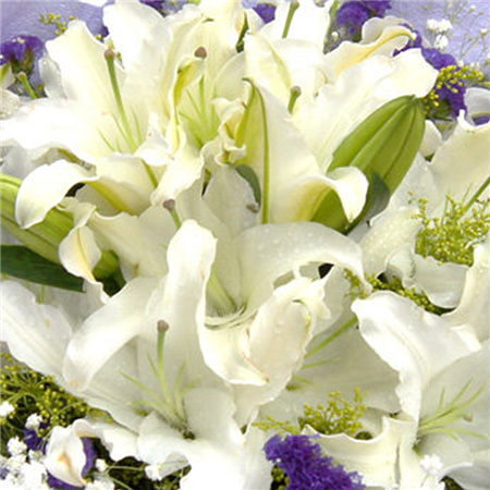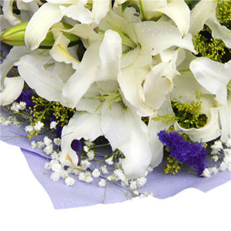 | 材质: | 5枝多头白色香水,外围黄莺、满天星、勿忘我 |
