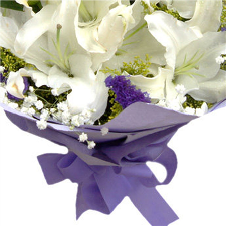 | 包装: | 浅紫色皱纹纸圆形包装,搭配浅紫色蝴蝶结 | ||||