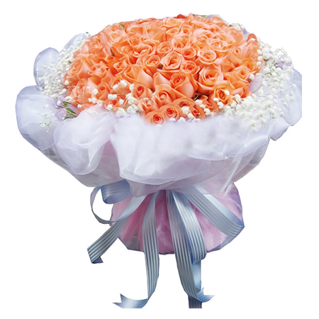 材质: 66支粉色玫瑰,外围满天星