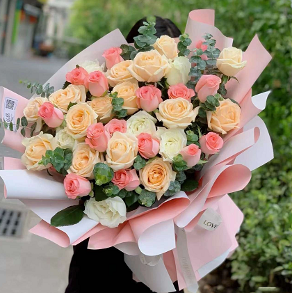 其它说明: 由于鲜花包扎各地的花艺师不同,可能在花束的形式和搭配上与图片不完全一致