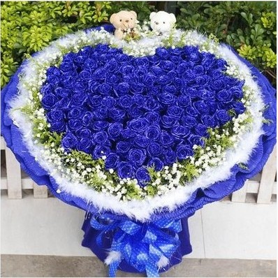 材质: 精选99朵优质蓝玫瑰,满天星,黄莺围边