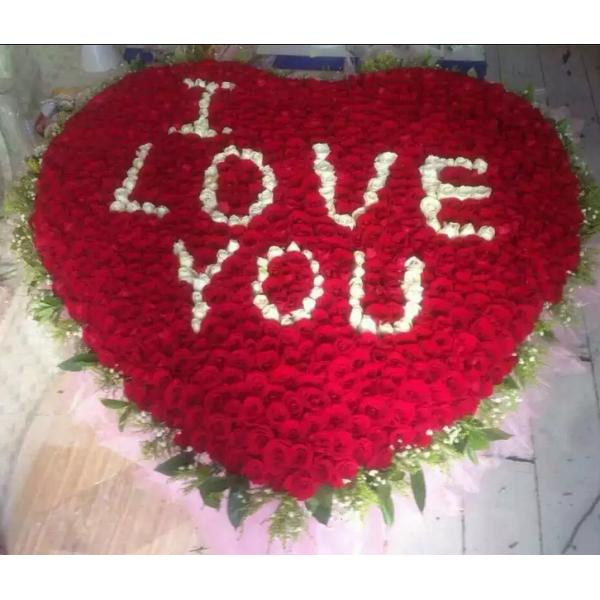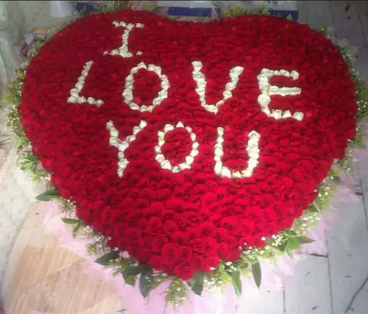 | 材质 | 999朵红玫瑰白红玫瑰搭配 白玫瑰中间摆成I LOVE YOU形状 搭配黄莺满天星 |