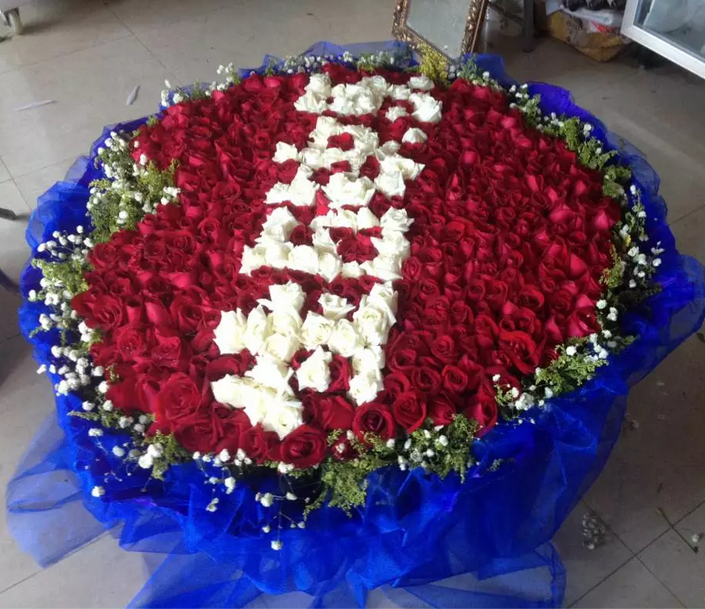 | 材质: | 红玫瑰白玫瑰 999朵,红玫瑰摆成心形 白玫瑰中间摆生日快乐四个字 搭配黄莺 满天星 |