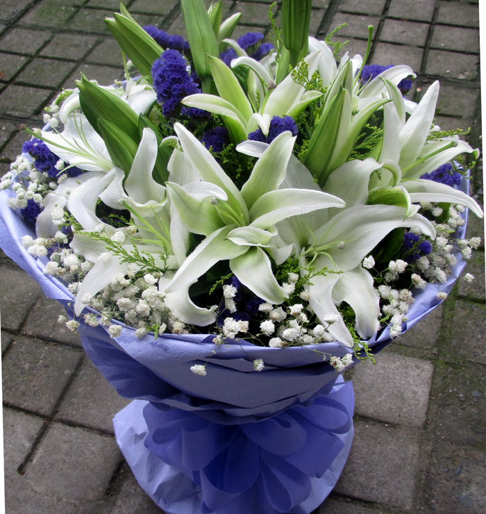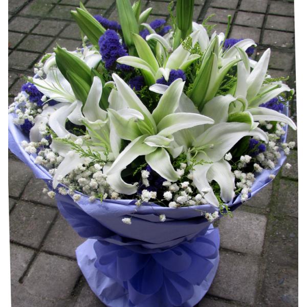 | 材质: | 16朵香水百合,搭配勿忘我、满天星。 | ||||