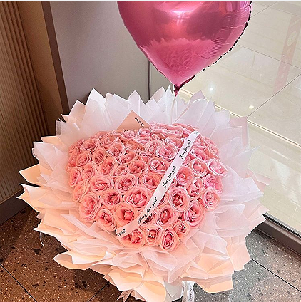 材质: 精选66朵粉荔枝玫瑰心形,气球一个