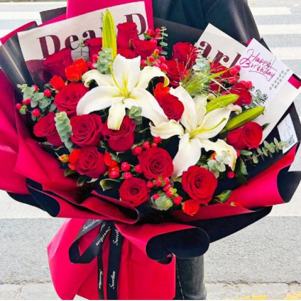 其它说明: 由于鲜花包扎各地的花艺师不同,可能在花束的形式和搭配上与图片不完全一致