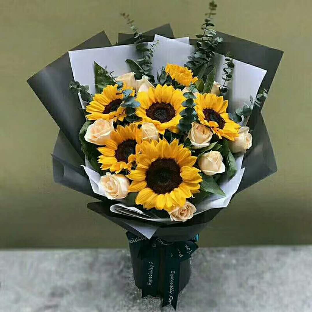 材质: 精选6朵向日葵11朵香槟玫瑰,尤加利叶搭配