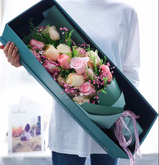 精选10枝香槟玫瑰,9枝戴安娜粉玫瑰,共19枝