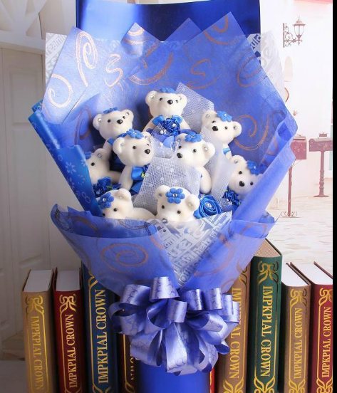 精选9只小熊公仔,(颜色随机)组成美丽花束