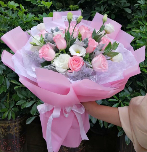 11枝戴安娜玫瑰,银叶菊,桔梗间插