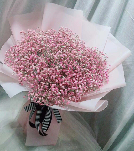 粉色满天星包扎成美丽花束