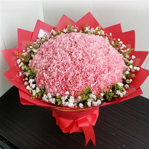 精心挑选66朵优质康乃馨,黄莺,满天星点缀。