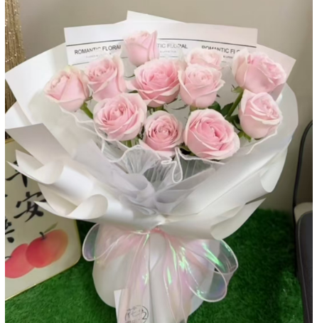 11枝粉雪山玫瑰,如图包扎