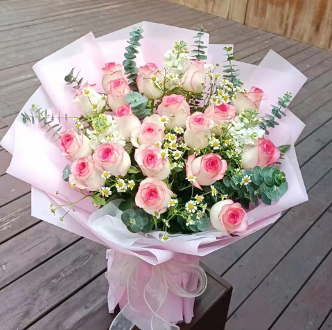 19枝爱莎玫瑰,洋甘菊,尤加利叶丰满