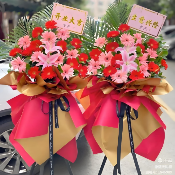 20枝红色和粉色扶郎 2朵百合 散尾葵 栀子叶搭配按图制作