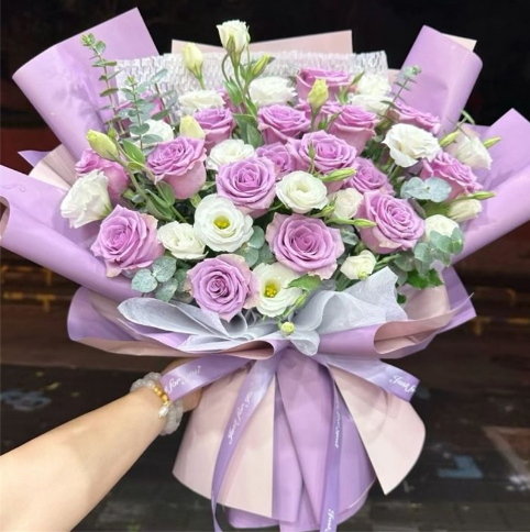 19枝紫玫瑰,足量桔梗,尤加利叶搭配